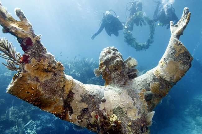 A 17 metros de profundidad en el mar Mediterráneo se encuentra esta increíble estatua de Jesucristo. Creada por el artista Guido Galletti, la estatua bendecía desde tierra firme la ciudad de Camogli. En la actualidad miles de aficionados al buceo se sumergen para descubrir esta increíble figura.