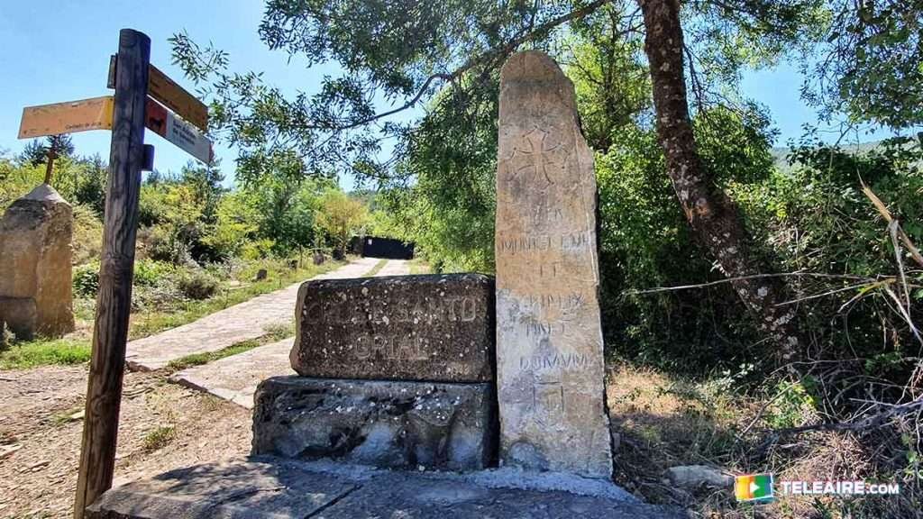 Y de repente, en mitad de un cruce compartido con el Camino de Santiago, en una senda rural sin coches ni peregrinos a la vista, nos vimos sorprendidos por un curioso monumento de piedra, que lucía la leyenda de Cruce del Santo Grial. ¡Menuda impresión nos llevamos! Por primera vez veíamos una señalización histórica.