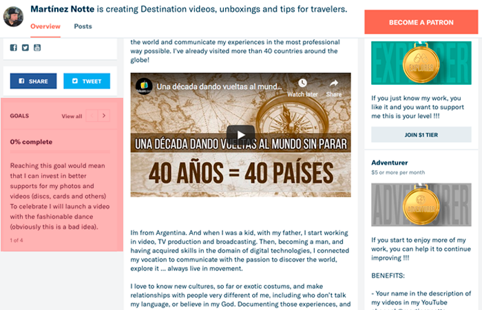 Nuestro perfil en esta plataforma es patreon.com/martineznotte, ya tengo mi primer mecenas pero te necesito a vos y por eso hice este video, para que me apoyes.